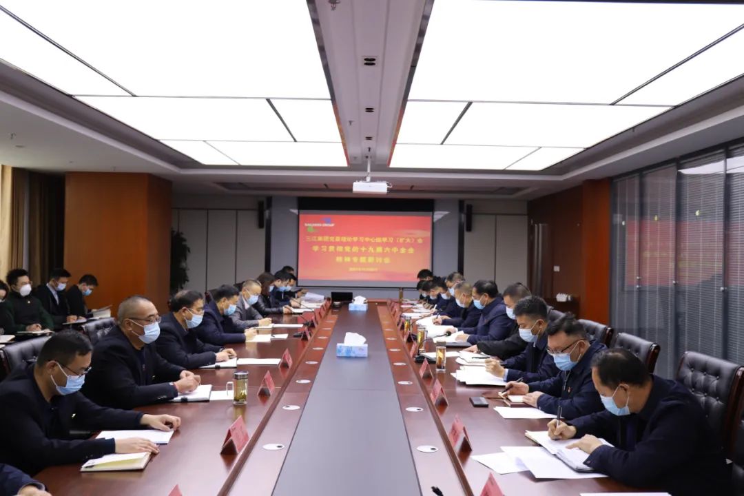 11月22日,三江集團黨委召開理論學習中心組學習(擴大)會,圍繞“學習貫徹黨的十九屆六中全會精神”深入開展學習交流研討。省委黨史學習教育第十二巡回指導組組長、省國資委二級巡視員元乃光、指導組成員、省國資委企業領導人員管理處二級調研員陳建華到會指導。會議由集團公司黨委書記、董事長馬榮華主持,機關各部室中心主任以上人員參加。