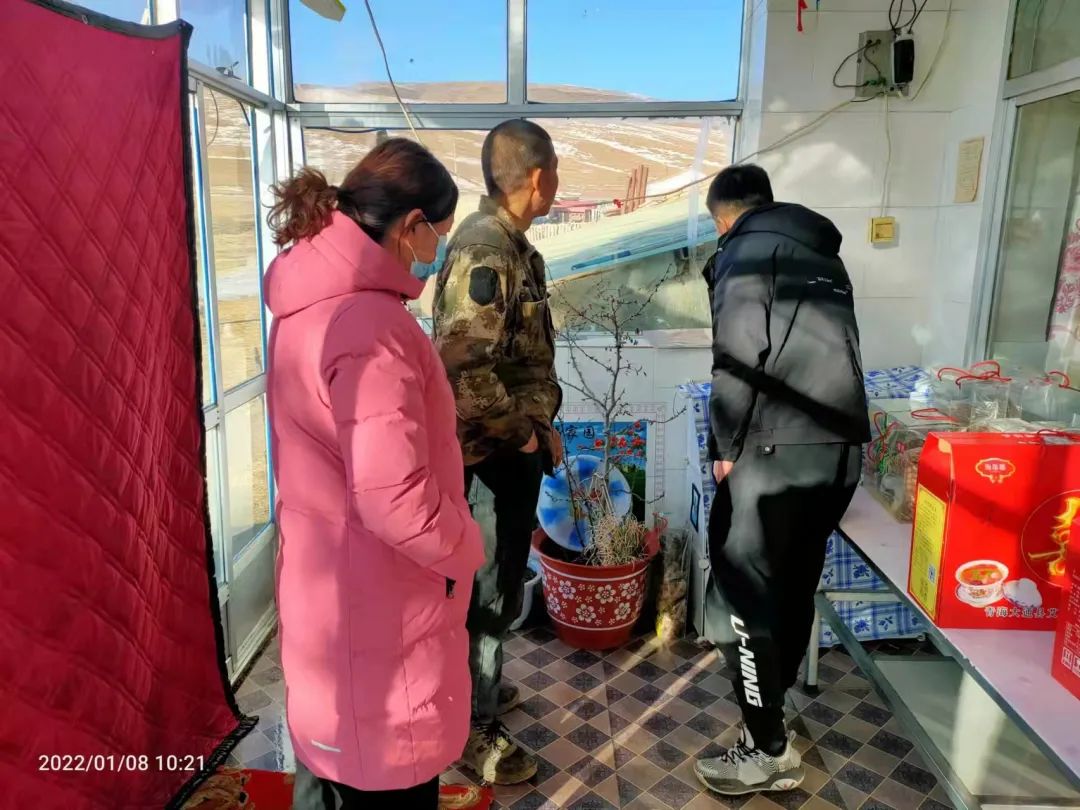 門源縣委副書記、政法委書記切加、集團公司副總經理牛建偉到震區牧戶家中了解情況
