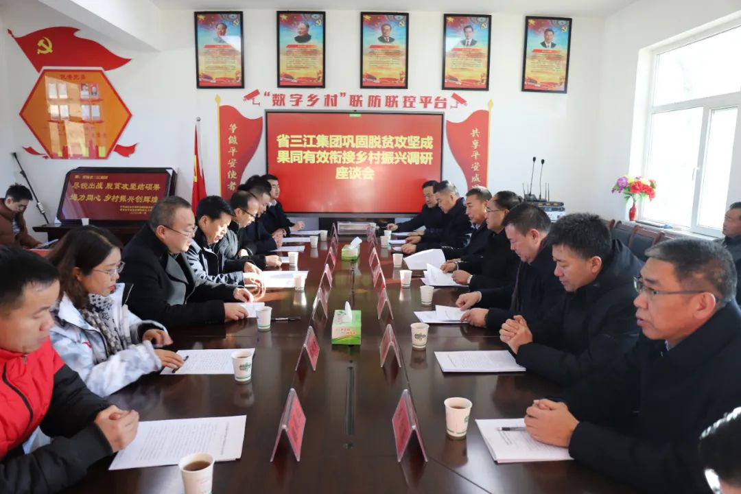 走訪慰問后,在古城鄉木場村召開了由集團領導班子成員、平安區、古城鄉相關領導、威思頓薯業公司和機關相關部室主要負責人參加的“三江集團鄉村振興調研座談會”。會上,集團公司副總經理牛建偉、古城鄉黨委書記謝浩分別匯報了2021年鄉村振興工作推進情況。馬榮華同志在講話中充分肯定了脫貧攻堅和鄉村振興工作取得的成績。認為古城鄉黨委在抓黨建促生產上下功夫,充分利用當地自然資源稟賦,以農業產業撬動鄉村產業振興,用活用足鄉村振興政策,強化對接交流,不斷拓展工作思路,通過共同努力,實現了經濟社會高質量發展。馬榮華同志表示,集團公司將一如既往地支持扶貧村鄉村振興工作,協調解決發展中存在的難題。他要求,一是要進一步提高政治站位,加強黨建引領助推產業發展,充分發揮駐村工作隊干部的模范帶頭作用。二是要緊盯適合幫扶村鄉村產業發展的項目,補齊產業發展短板,增強村集體經濟實力,以黨建助推鄉村振興。三是要持續推動“企業進村、結對幫扶”等工作機制,深入實施幫扶村產業項目增收工作,以產業振興持續推動鄉村振興。