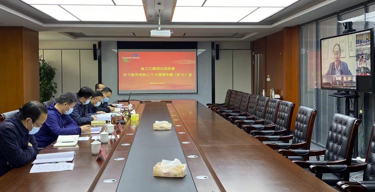 11月2日上午,省三江集團公司黨委組織召開專題學習會,深入學習宣傳黨的二十大精神,對集團公司學習宣傳貫徹黨的二十大精神進行再安排、再部署。會議以“現場+視頻”的形式召開。集團公司黨委書記、董事長馬榮華主持會議并講話,集團公司領導班子成員、機關各中心主任以上人員,所屬各單位領導班子成員、黨群部門及紀檢監察室負責人現場或視頻參會。