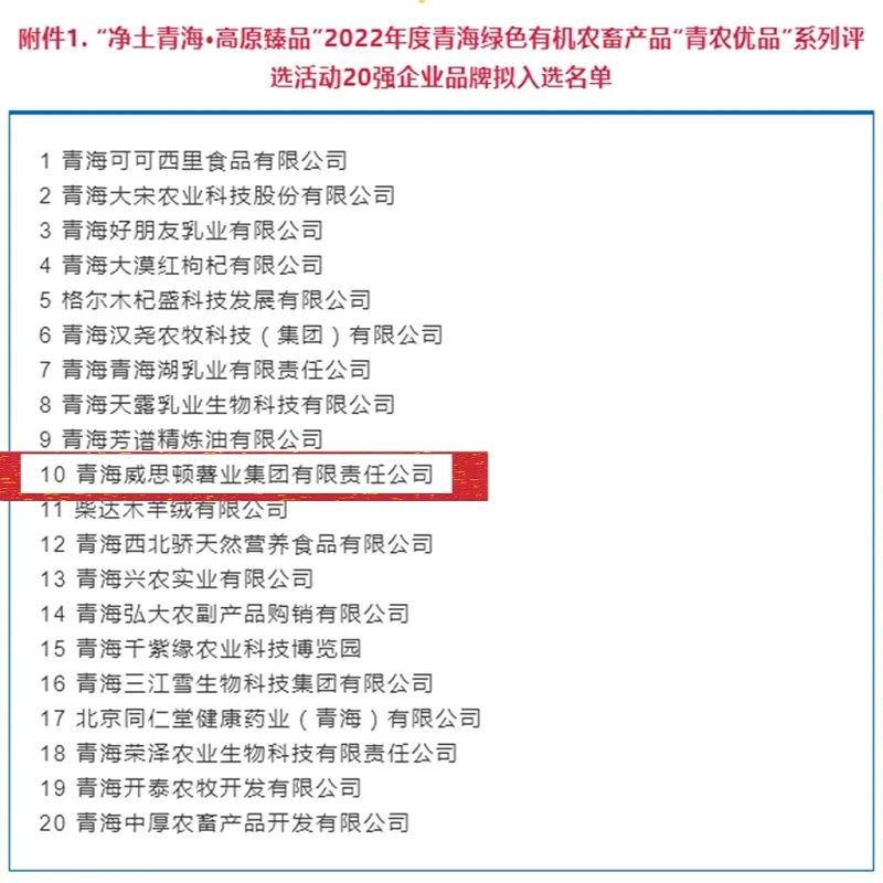 △“凈土青海·高原臻品”2022年度青海綠色有機農畜產品“青農優品”系列評選活動20強企業品牌擬入選名單