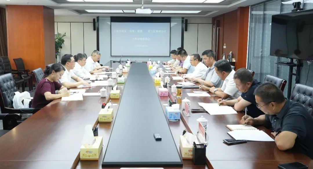 云南省農發(農墾)集團總經理助理,辦公室、戰略投資部負責同志,三江集團經營管理部、戰略投資部、威思頓薯業公司、三江農牧產業公司、三江九州農牧產業公司負責同志參加座談。