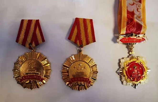 圖為張殿輝同志獲得的2004年青海省勞動模范獎章、2005年全國勞動模范獎章和慶祝中華人民共和國成立70周年紀念章。