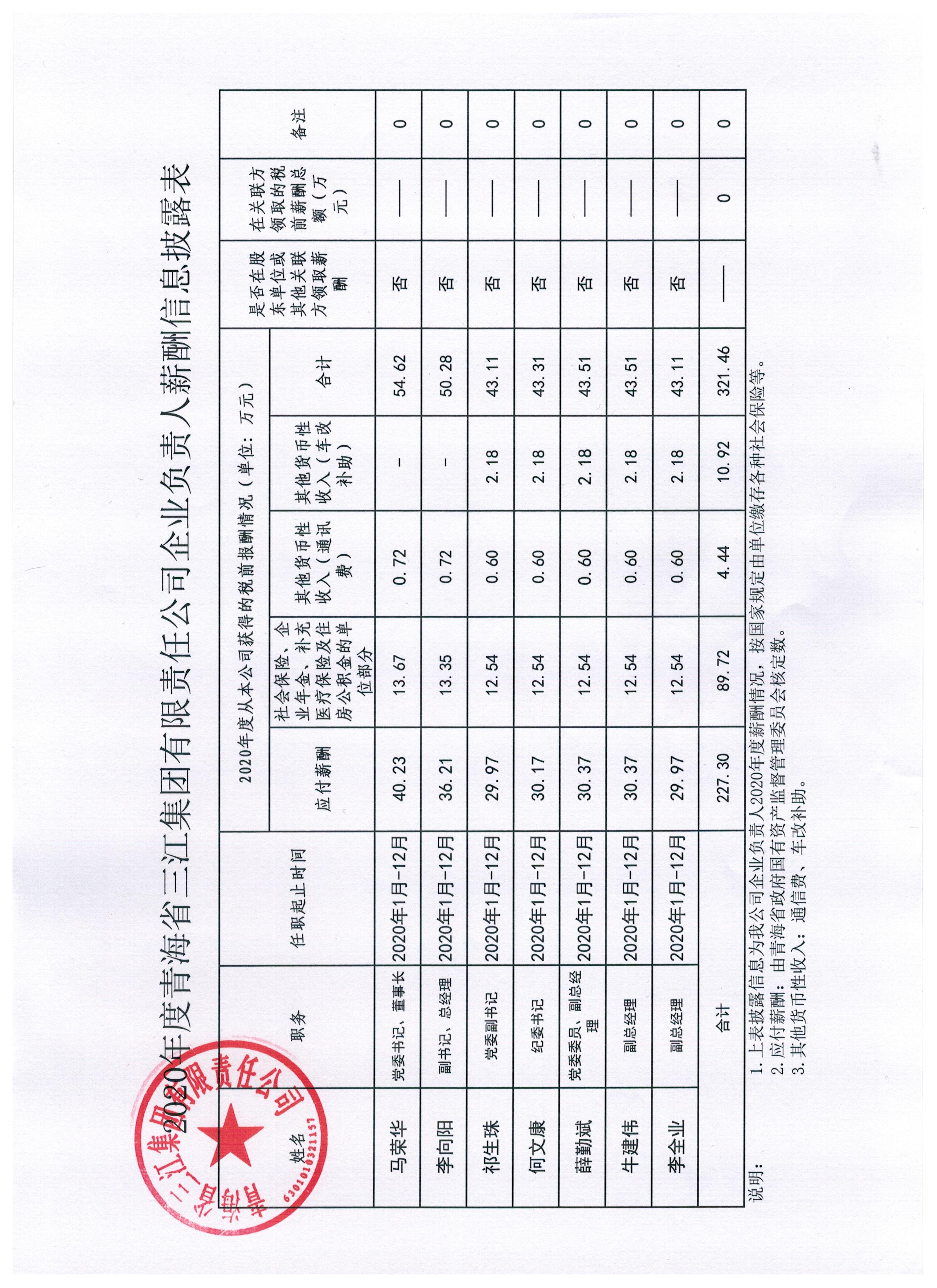 2020年度青海省三江集團(tuán)有限責(zé)任公司企業(yè)負(fù)責(zé)人薪酬信息披露表