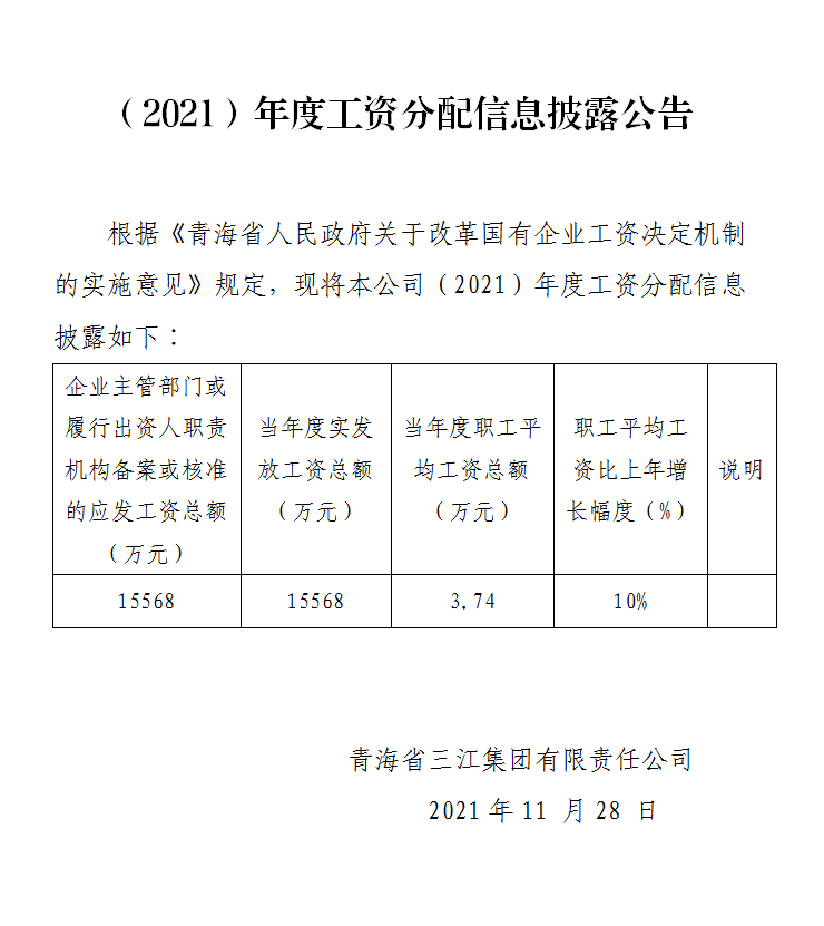 青海省三江集團有限責任公司 企業負責人2021年度薪酬 及第四任期激勵收入情況