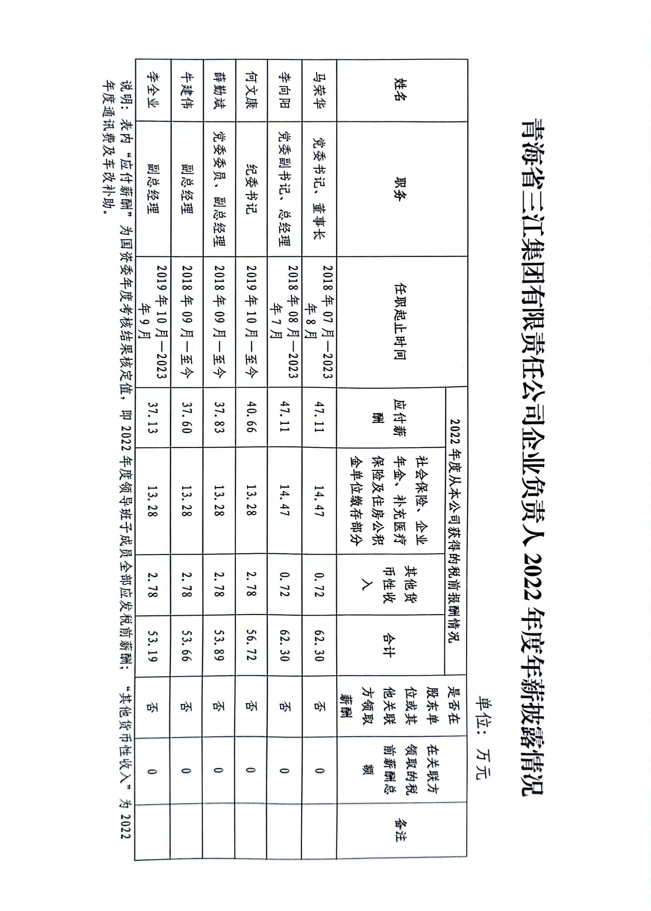 青海省三江集團有限責任公司企業負責人2022年度年薪披露情況