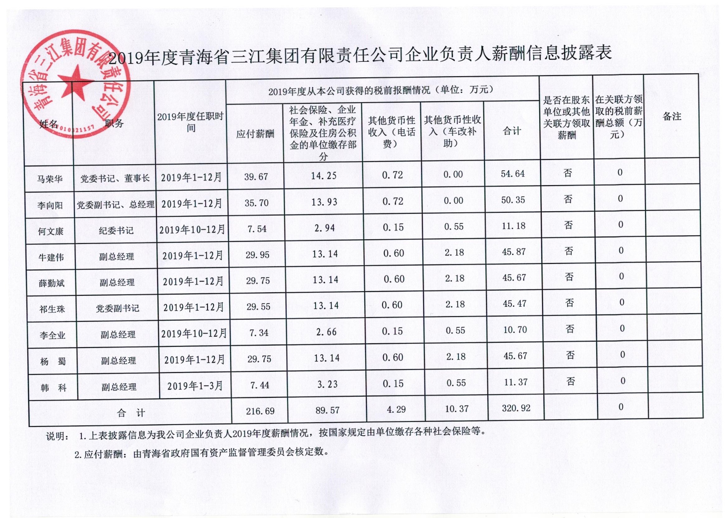 2019年度青海省三江集團有限責任公司企業(yè)負責人薪酬信息