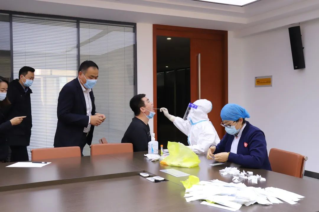 為進一步強化疫情防控措施,10月29日中午,集團公司邀請青海省紅十字醫院醫護人員,開展對集團公司機關、威思頓公司及三江物業公司等職工逐一進行核酸樣本采集工作,共進行核酸檢測118人。
