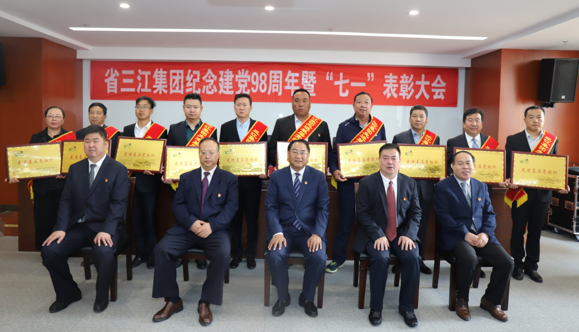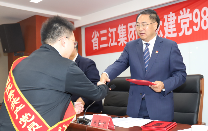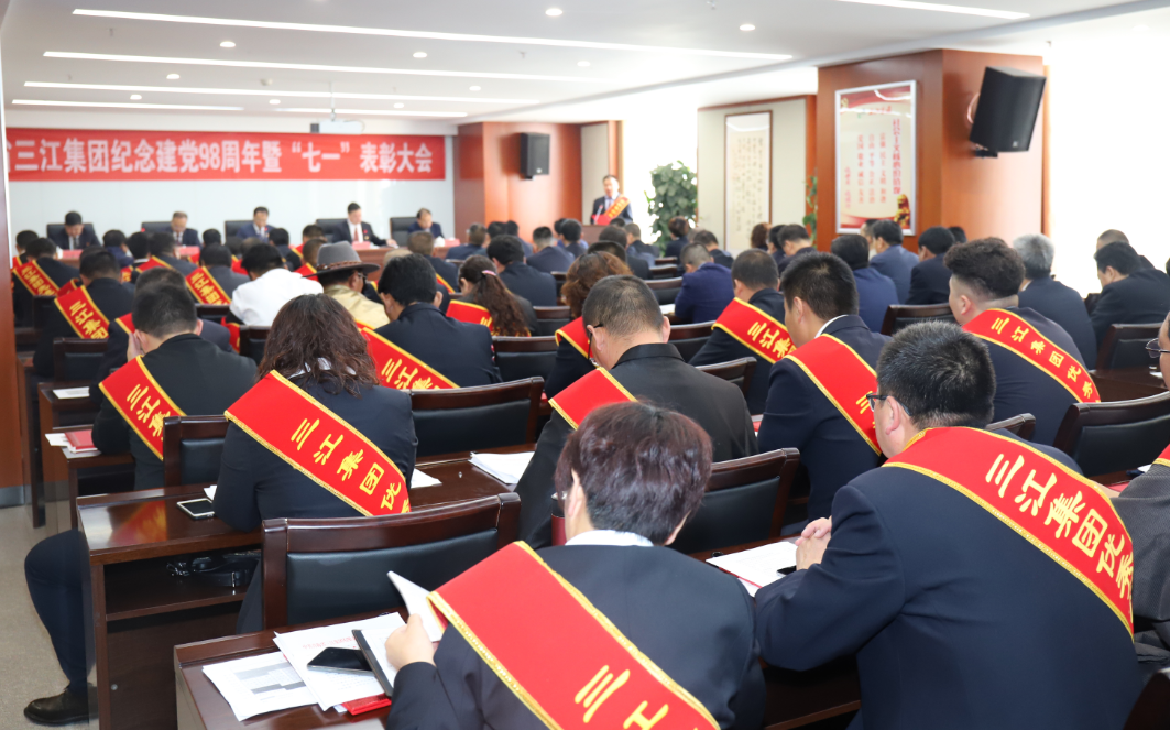 7月1日上午,省三江集團公司黨委召開紀念中國共產黨成立98周年暨慶“七一”表彰大會,隆重舉行新黨員入黨宣誓,老黨員重溫入黨誓詞,表彰先進基層黨組織、優秀共產黨員和優秀黨務工作者。集團公司黨委書記、董事長馬榮華代表集團公司黨委作題為《不忘初心 牢記使命 以領袖思想為指引全面加強企業黨建》的講話,會議由集團公司黨委副書記、總經理李向陽主持。